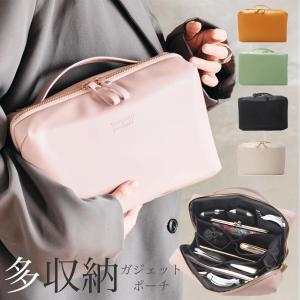 ガジェットポーチ 大容量 女性向け 収納ポケット 仕切り 多数 かわいい 革 レザー 大きめ自立 おしゃれ 軽量 旅行 レディース 黒 茶 緑