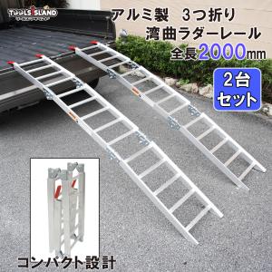 ラダーレール バイク 2本 折りたたみ アルミ ツメ式フック 3つ折り 湾曲 スロープ 2m 耐荷重 270kg 2台セット