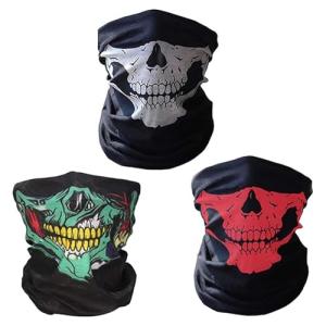 CBValleyol 3 枚 マスクスカル フェイス ネックウォーマー ハーフ フェイスマスク 防風/防塵 着脱簡単バイクに仮装 サバゲ ーに