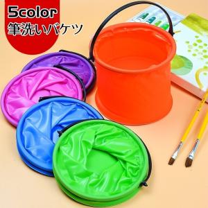 筆洗いバケツ 折りたたみ 折り畳みバケツ 無地 持ち手付き 省スペース コンパクト収納 ペン洗い 絵の具 写生 絵画 図工 持ち運び便利 生活雑貨 ア