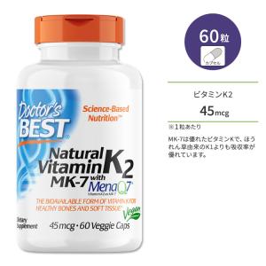 【クーポンあり】ドクターズベスト ナチュラル ビタミンK2 45mcg 60粒 ベジカプセル Doctor's Best Natural Vitamin K2 MK-7 with MenaQ7 サプリメント ビタミン