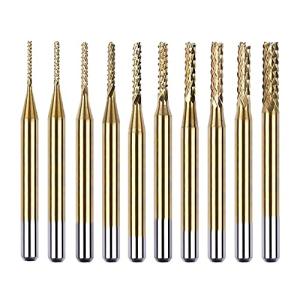 Saipor 10個セット エンドミルセット チタンコーティング セメントカーバイド フライスカッター 1/8インチシャンク 超硬 彫刻ドリルビット