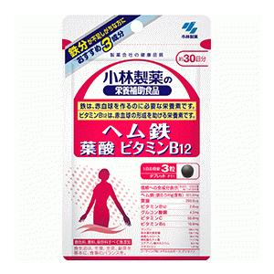 【メール便対応!!】 小林製薬の栄養補助食品 ヘム鉄 葉酸 ビタミンB12 90粒(約30日分)