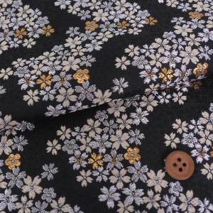 金襴生地(金らん) 流水に丸紋と桜(紺) 10cm単位 切り売り