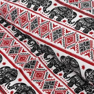ゾウ柄 レーヨン生地 ハンドメイド タイパンツ ハーフパンツ シャツ 手芸用 アジアン 布(ネイビー, 約110 x 270cm)
