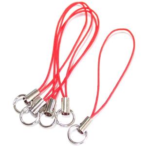 3265-《ストラップ/根付》 赤(紐)/銀色(金具) 丸カン付き 50mm前後 5本/1セット