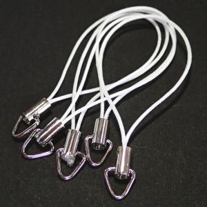 3272-《ストラップ/根付》 白(紐)/銀色(金具) 三角カン付き 50mm前後 5本/1セット