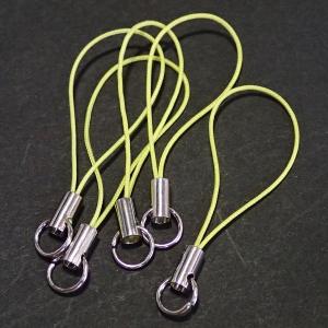 3262-《ストラップ/根付》 黄色(紐)/銀色(金具) 丸カン付き 50mm前後 5本/1セット