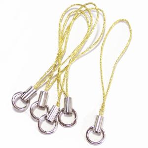 3275-《ストラップ/根付》 金色(紐)/銀色(金具) 丸カン付き 50mm前後 5本/1セット