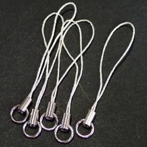 3276-《ストラップ/根付》 銀色(紐)/銀色(金具) 丸カン付き 50mm前後 5本/1セット