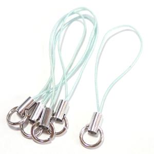 3281-《ストラップ/根付》 ミントブルー(紐)/銀色(金具) 丸カン付き 50mm前後 5本/1セット
