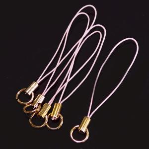 8107-《ストラップ/根付》 ピンク(紐)/金色(金具) 丸カン付き 50mm前後 5本/1セット