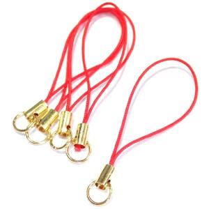 8108-《ストラップ/根付》 赤(紐)/金色(金具) 丸カン付き 50mm前後 5本/1セット