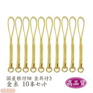 根付紐 金色金具 金糸 10本セット 国産高品質! / レジンパーツ 帯飾り つまみ細工 ストラップ 和小物 和風パーツ 手芸 ハンドメイド