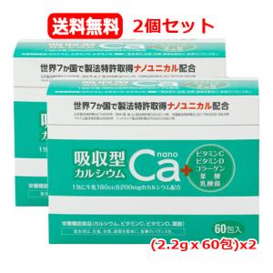 【送料無料】 吸収型カルシウムnano 2.2gx60包 2個セット 栄養機能食品 ビタミンC ビタミンD 葉酸 コラーゲン 乳酸菌 水なしでのめる レモン味 顆粒 スティック