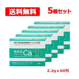 【送料無料】 吸収型カルシウムnano 2.2gx60包 5個セット 栄養機能食品 ビタミンC ビタミンD 葉酸 コラーゲン 乳酸菌 水なしでのめる レモン味 顆粒 スティック