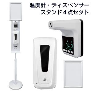 非接触温度計付き ディスペンサー 赤外線温度計 消毒 スタンド 4点セット POPケース付 オートディスペンサー 店舗 オフィス 送料無料 ◇ 直送■温度計スタンド