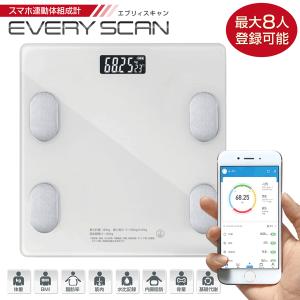 体重計 体組成計 スマホ連動 8人登録 体脂肪 体脂肪計 体脂肪率 体組成計 BMI 内蔵脂肪 基礎代謝 ヘルスメーター 薄型 新生活 送料無料- 60N◇ エブリスキャン