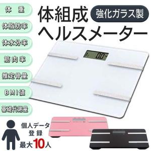 体重計 体組成計 高精度 おしゃれ 強化ガラス製 体脂肪 筋肉量 基礎代謝量 BMI 体重 骨量 水分率 薄型 10人登録 軽量 健康管理 //60N◇ 体組成計CSC161