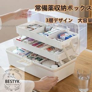 薬箱 救急箱 大容量 3層 収納ケース 収納ボックス 工具箱 透明 収納箱 取っ手付き 折り畳み 携帯便利 薬入れ 小物入れ 家庭用