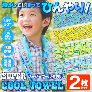 2枚セット ひんやりタオル UVカット 98% キッズ 暑さ対策 新幹線 JR クールタオル UPF50+ 首掛け 冷感 子ども 夏 熱中症対策 冷たい ◇ スーパークールタオル