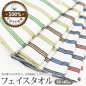 送料無料 タオル 2枚セット フェイスタオル 綿100% ストライプ 柄 62×40cm コットンタオル 吸水性 抜群 シンプル 天然 2枚組 3M◇ ストライプタオルIX