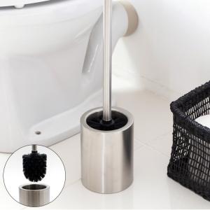 ステンレススチール トイレブラシセット トイレブラシ 丸型 シルバー ステンレス トイレポット コーナーポット トイレ用品 トイレ清掃用品 掃除グッズ 90177