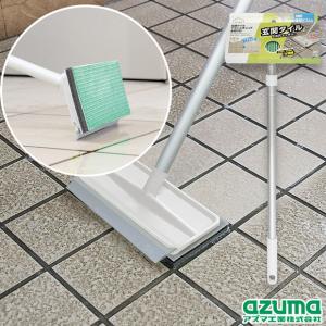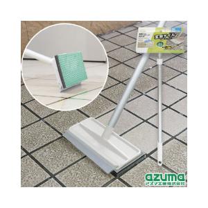 アズマ公式 玄関タイルブラシ スポンジ F水切り 付 (スペア2枚付) 伸縮 全長68〜110cm ライトグレー 床 玄関掃除ブラシ モップ デッキブラシ ベランダ AZ297