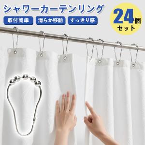 シャワーカーテンリング 24個セット カーテンリングフック 金属ボールで動き滑らか メッキ加工 スライドリング しっかり固定 シルバー