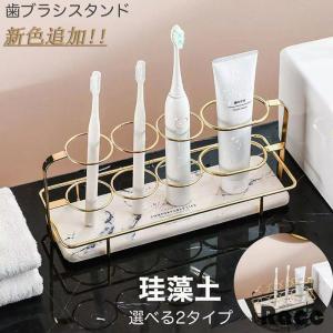 歯ブラシスタンド 珪藻土 かわいい おしゃれ スリム ゴールド 速乾 吸水 歯ブラシホルダー 4本用 歯ブラシ立て ノンアスベスト