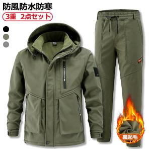 マウンテンジャケット ウインドブレーカー 上下 ミリタリー 防寒 マウンテンパーカー 撥水 ジャンパー カジュアル 上下セット 裏起毛 メンズ ジャケ