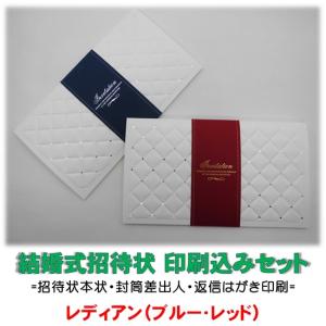 結婚式 招待状 印刷込み(本状・封筒・返信はがき)セット レディアン(ブルー・レッド) 文例お届け 宛名印字対応
