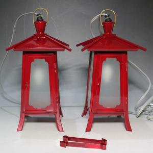 未使用保管品■吊型小長灯籠7寸 金属製赤色1対 電装付■神具