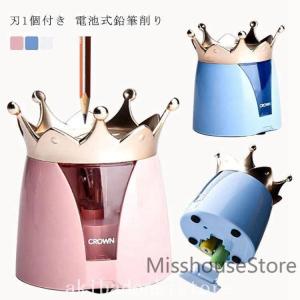 鉛筆削り電池式えんぴつ削り鉛筆削り器電動鉛筆削りコンパクト子供かわいいピンクブルーホワイトクラウン誕生日