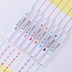 カーブペン 水性ペン 蛍光ペン ローラースタンプペン 花柄/ハート/点線/波線 速乾 耐久 手帳 日記 筆記用具 贈り物8色、6種類