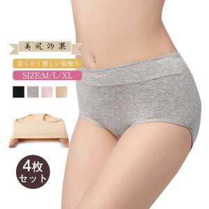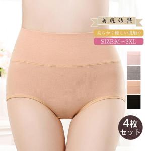 4枚セットショーツ 深ばき 綿 無地 大きいサイズあり レディース 秋新作 美尻効果 温め 保温 効果 対策 女性用 大きめ ストレッチ
