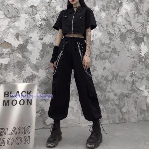 パンツ レディース 原宿系 春夏 ミリタリーパンツ カーゴパンツ ワイドパンツ 韓国ファッション ウエストゴム ストリート系 ヒップホップ ダンス衣装