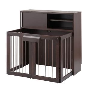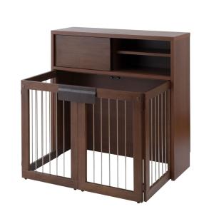 家具に収まる 折りたたみ 犬用ケージ 幅90 ブラウン 完成品 小型犬 おしゃれ ペットサークル ゲージ 室内 木製 犬用サークル ペットゲージ 日本製 収納付き