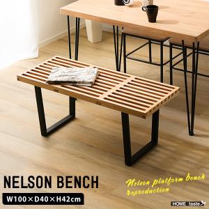 デザイナーズ家具 ネルソンベンチ 幅100 リビングベンチ 木製 室内 屋内 おしゃれ リプロダクト ダイニングベンチ 幅100cm インテリア モダン スチール脚