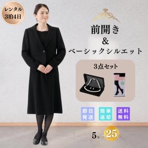 礼服 喪服 レンタル 3点セット ベーシック レディース ブラックフォーマル 翌日配達 前開き ストレッチ 安い 5 7 9 11 13 15 17 19 21 23 25 号 30 40 50 60 代