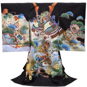 【レンタル】 お宮参り 着物 男の子 正絹 産着 長襦袢付 1(黒・兜小槌)
