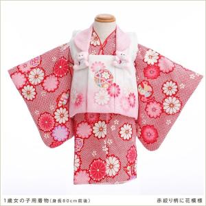 1歳女の子 着物レンタル 初節句 桃の節句 七五三 jbk037 結婚式 子供着物 赤絞り柄にかわいい花模様 ベビー着物 70cm〜80cm