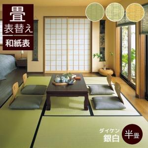畳新調 畳替え 縁付き畳 半畳 DAIKEN ダイケン和紙表【銀白市松】江戸間サイズ カラー3色 畳厚み 30-60mm 薄畳対応15-25mm 和室敷き込み
