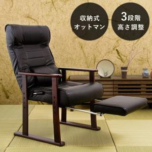 木製肘付リクライニング高座椅子 フットレスト付 ヘッドレスト 肘掛 椅子 高齢者 介護 立ち座り 和室 レバー オットマン 黒 代引不可
