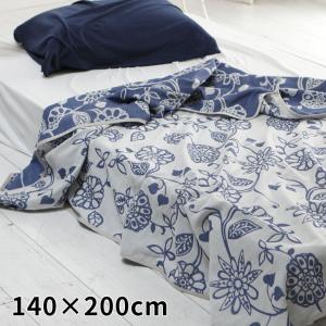 マルチカバー ガーゼケット 綿 140×200cm リバーシブル ブランケット 肌掛け コットン 綿100% ジャガード織 二重織 2重ガーゼ ボタニカル 90332