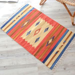 玄関マット 室内 おしゃれ 60×90cm ラグ マット キリム インド綿 民族 エスニック ネイティブ オルテガ Bタイプ 31101