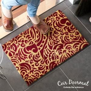 コイヤーマット 玄関マット ドアマット 室外 ダマスク柄 ワインレッド 赤 エントランス テラス デッキ 勝手口 泥落とし 雪 ココナッツ ココヤシ おしゃれ 32113