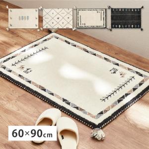 玄関マット 屋内 室内 大判 大きめ おしゃれ ギャッベ 約60×90cm 北欧 ウール モダン インテリアマット 高級感 タッセル 敬老の日