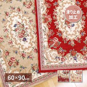 玄関マット 屋内 室内 60×90cm ゴブラン織り 花柄 マット 北欧 滑り止め 厚手 へたりにくい ホットカーペット 床暖 アクセント 敬老の日