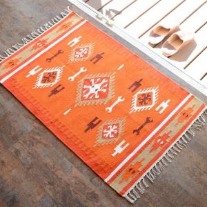 玄関マット 室内 おしゃれ 50×80cm ラグ マット キリム インド綿 オルテガ エスニック ネイティブ 民族 Aタイプ 31600